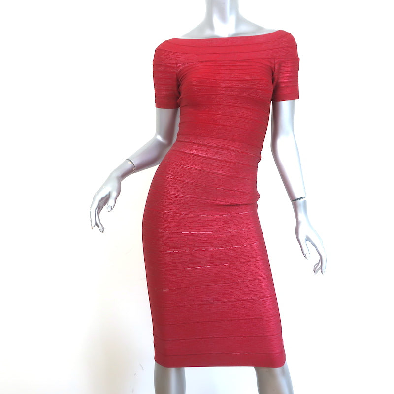 Herve Leger Carmen Off the Shoulder Bandage Dress Metallic Red Size Small