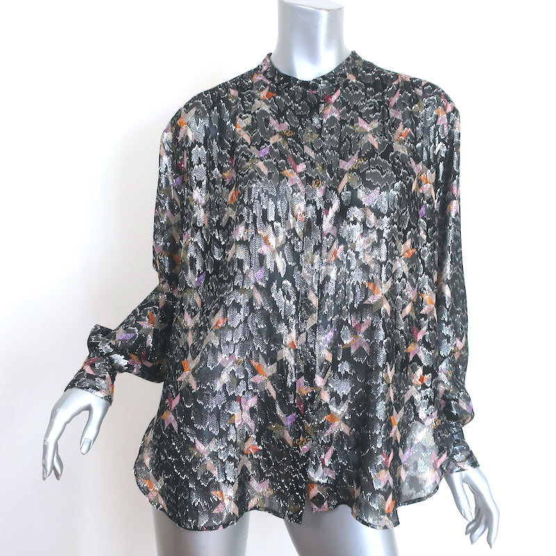 Isabel Marant Blouse Black Metallic Printed Chiffon Size 36 Long Sleeve Shirt