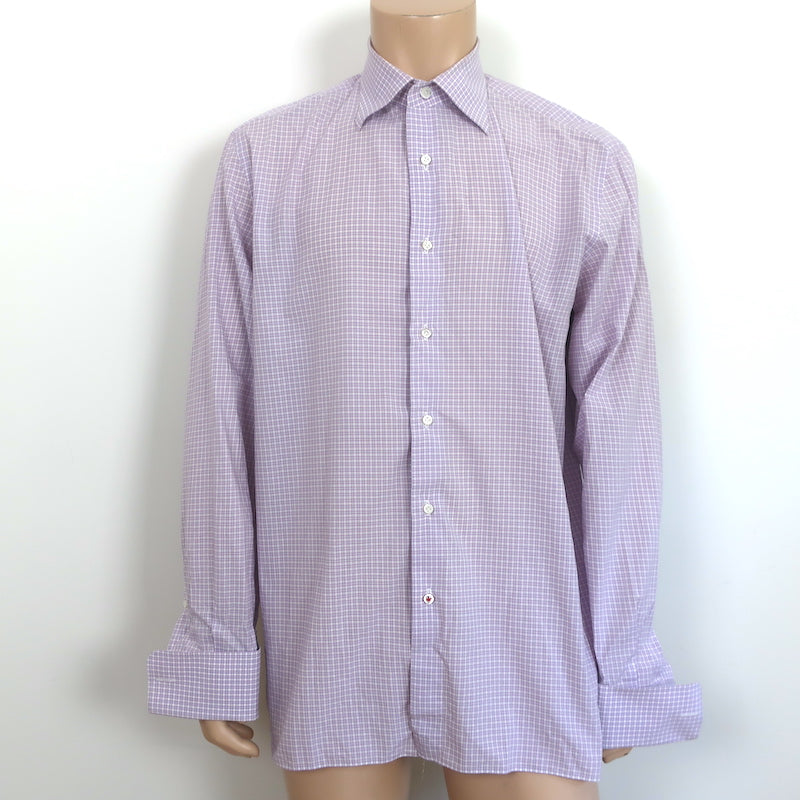 Isaia French Cuff Dress Shirt Light Purple Checked Cotton Size 42 - 16 1/2