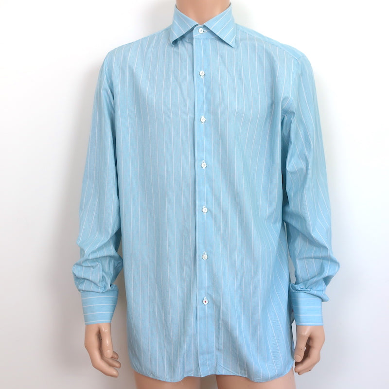 Isaia Striped Button Down Shirt Blue/White Cotton Size 41 - 16