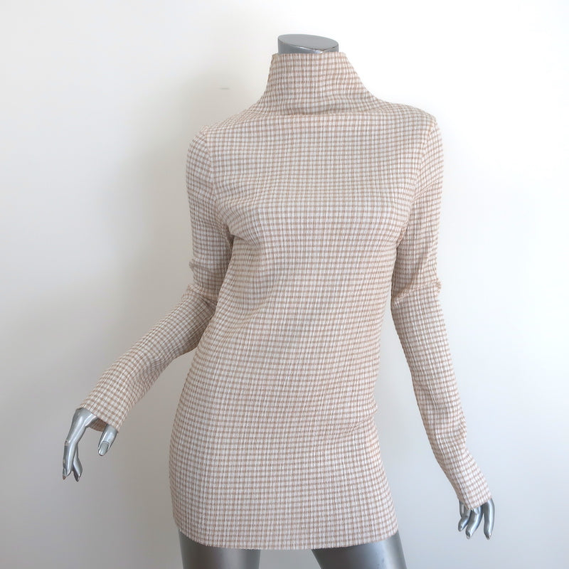 Jil Sander Gingham Long Sleeve Turtleneck Top Beige/White Cotton-Blend Size 36