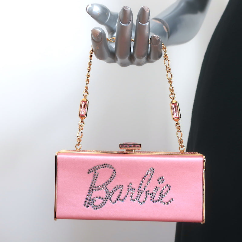 Judith Leiber x Barbie crystal-embellished minaudiere in pink satin offers a whimsical, statement-making finish to evening looks while showcasing the fine craftsmanship fans of the brand expect.