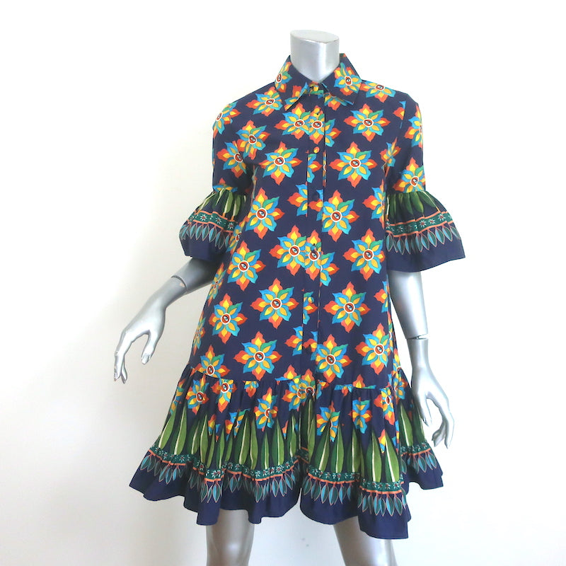 La DoubleJ Choux Ruffled Mini Shirtdress Navy Eye Print Cotton Size Extra Small
