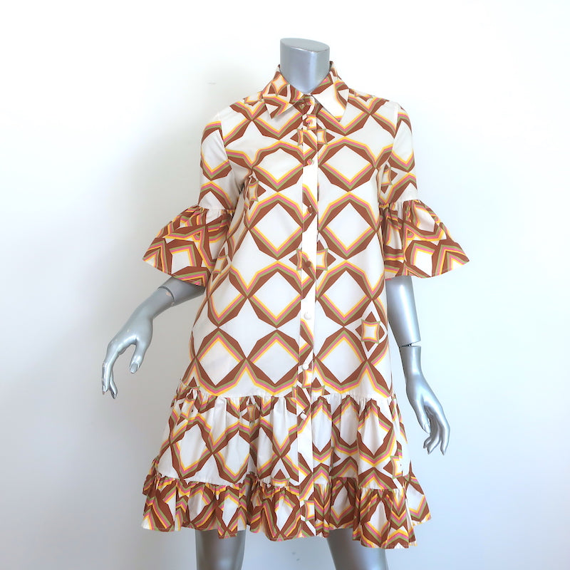 La DoubleJ Choux Ruffled Mini Shirtdress Cream Printed Cotton Size Extra Small