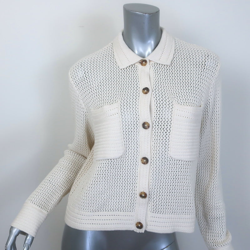 La Ligne Jane Crochet Shirt Cream Cotton-Blend Size Medium