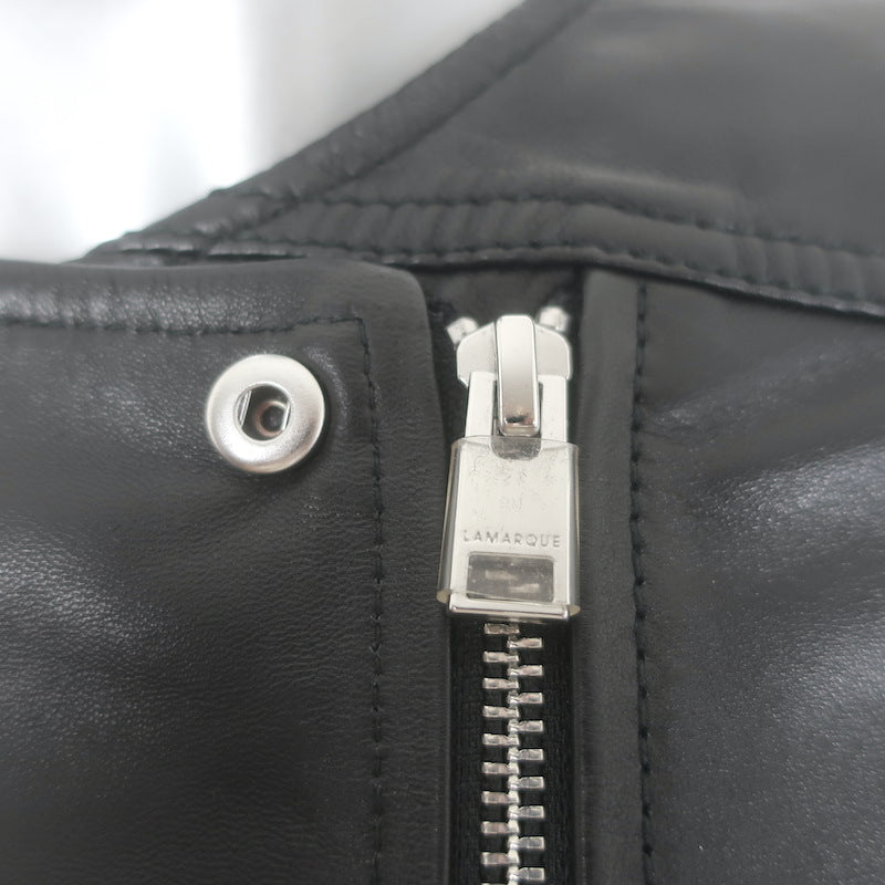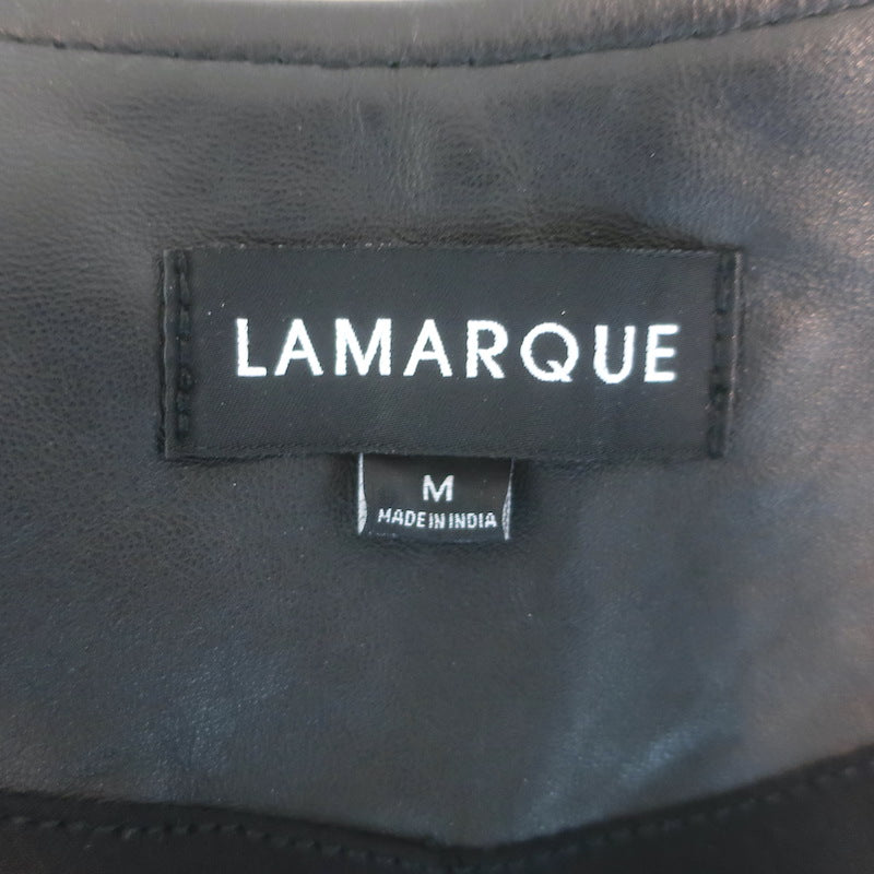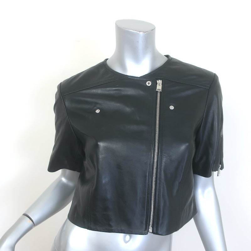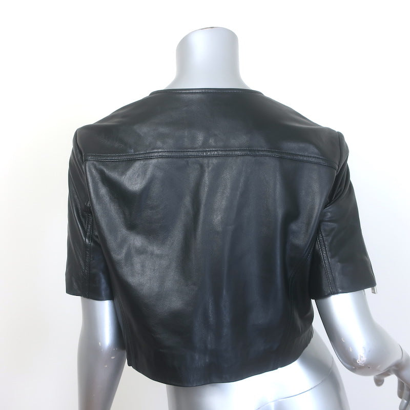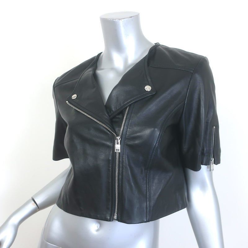 Lamarque Kirsi Cropped Short-Sleeve Leather Biker Jacket Black Size Medium