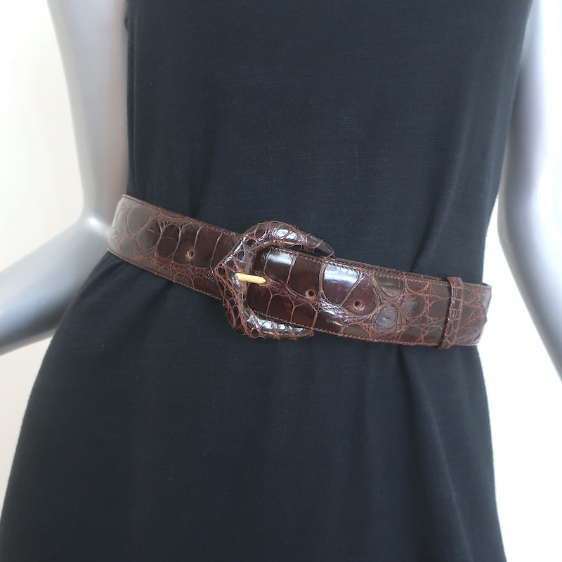 Gently worn. Great condition. No visible wear, a few scuffs on back side of belt. Comes with dust bag.