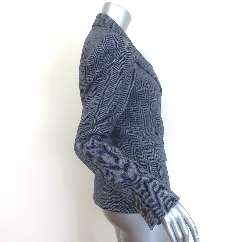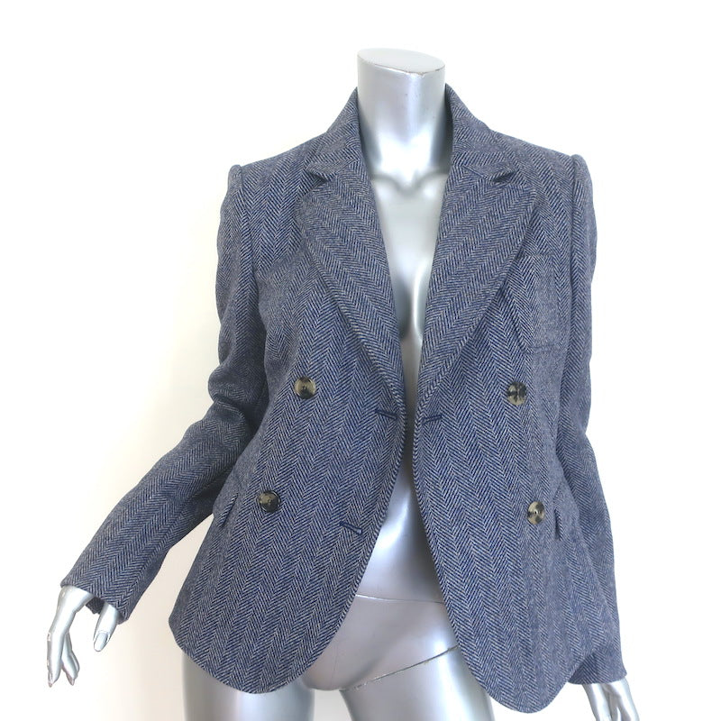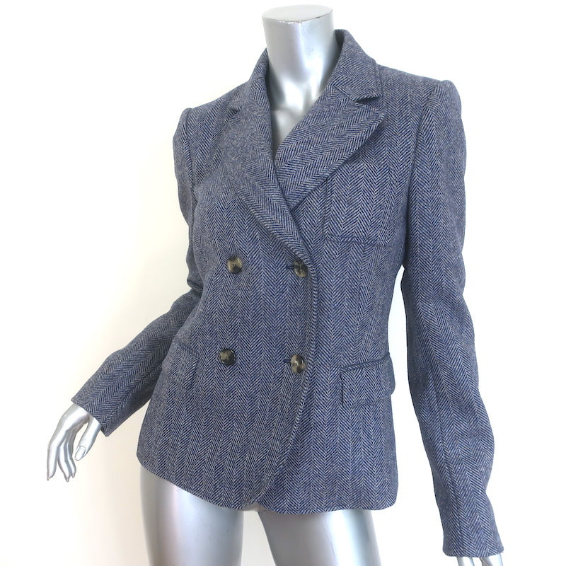 Loewe Herringbone Double Breasted Blazer Blue Melange Wool Size 38 NEW