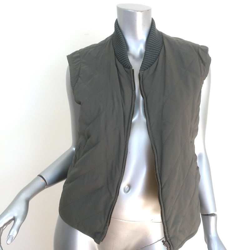 Loro Piana Quilted Puffer Vest Olive Size Small