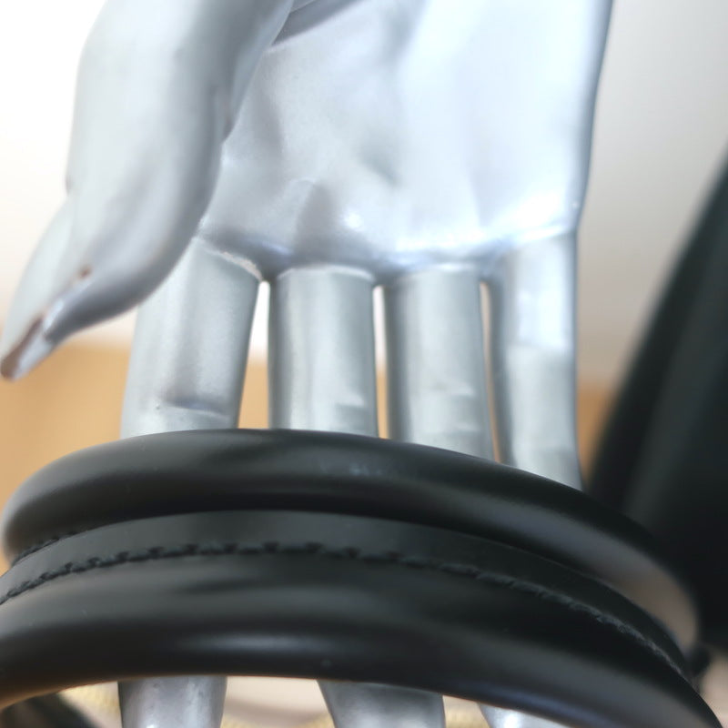 Pre-loved. Good condition. A few thin scratches on front side of buckle and tarnish on back side. Small areas of wear on...