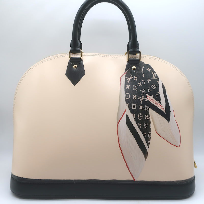 Louis Vuitton Alma GM Scarf Print Bag Eggshell Leather NEW