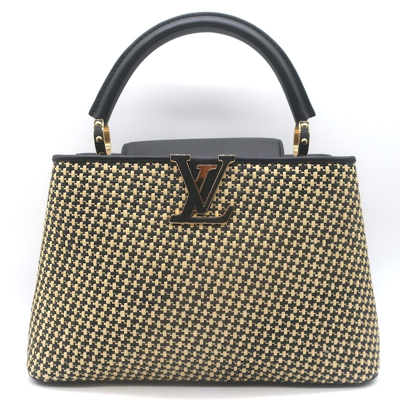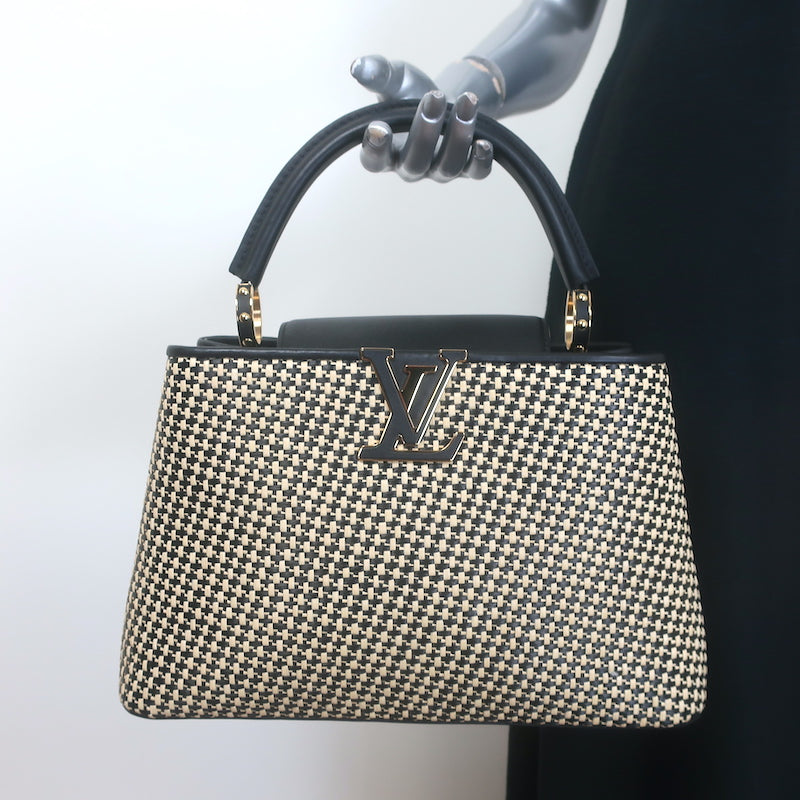 Louis Vuitton Limited Edition Capucines MM Woven Raffia Bag Beige/Black