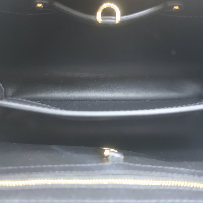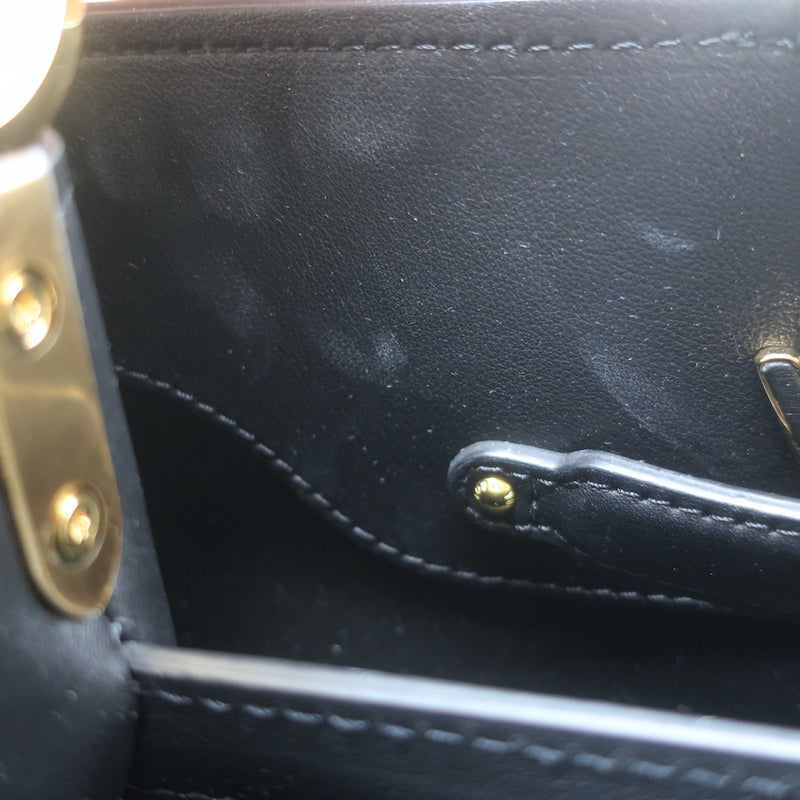 Pre-loved. Small gray scuffs throughout leather. Light wear on bottom corners and on side buckle loops. Missing shoulder strap. Light scratching on...