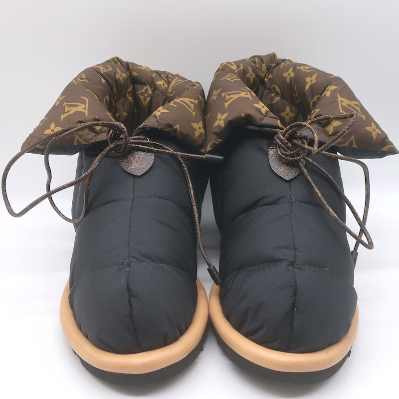 Louis Vuitton Pillow Comfort Ankle Boots Black & Brown Monogram Nylon Size 38
