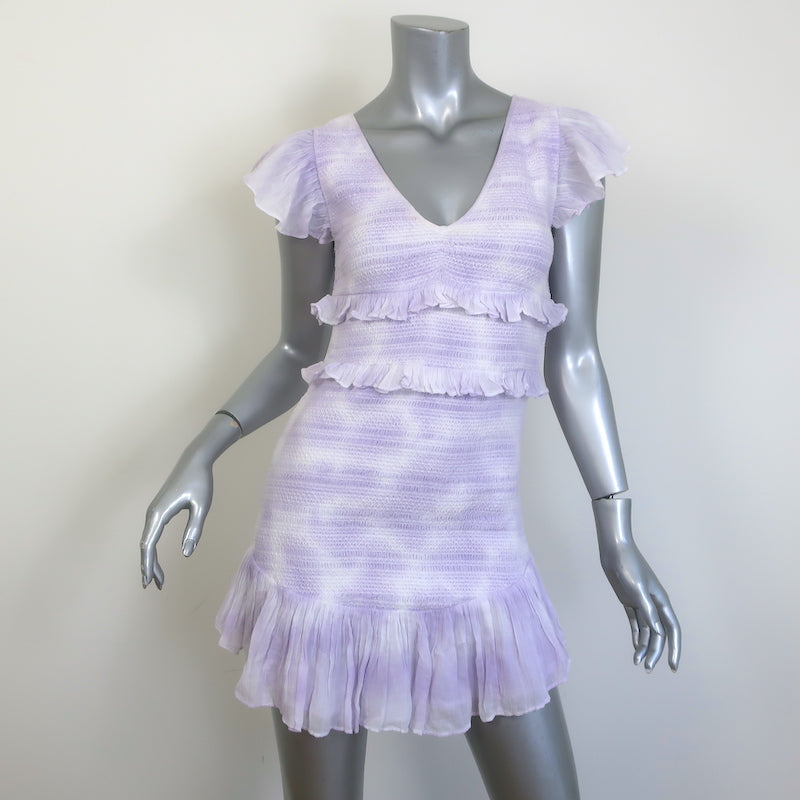 LoveShackFancy Sonara Smocked Mini Dress Lavender Tie Dye Cotton Size Petite