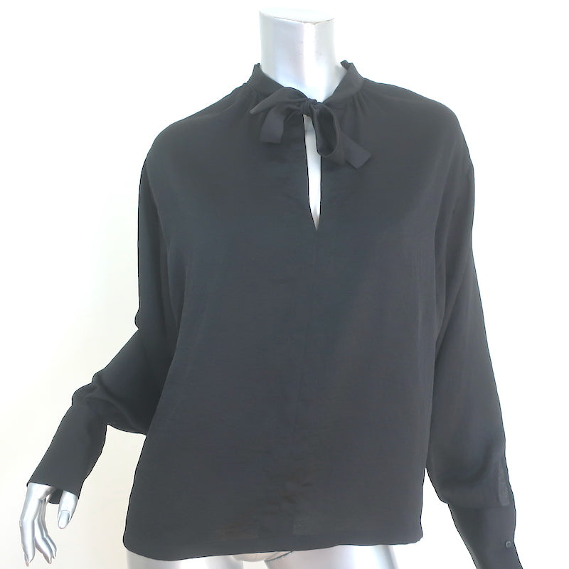 Maje Loiso Tie-Neck Blouse Black Satin Crepe Size 1 Long Sleeve Top