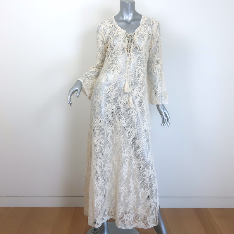 Marabelle Lace-Up Crochet Lace Maxi Dress Cream Size Large