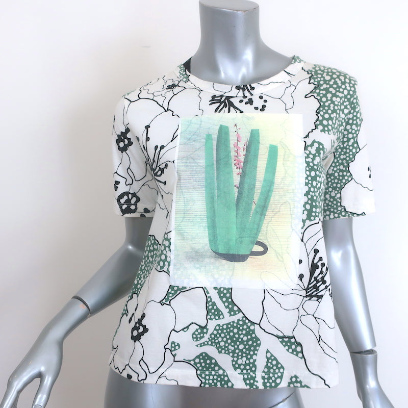 Marni Tie-Back Tee White Cactus Print Cotton Jersey Size 42 Short Sleeve Top