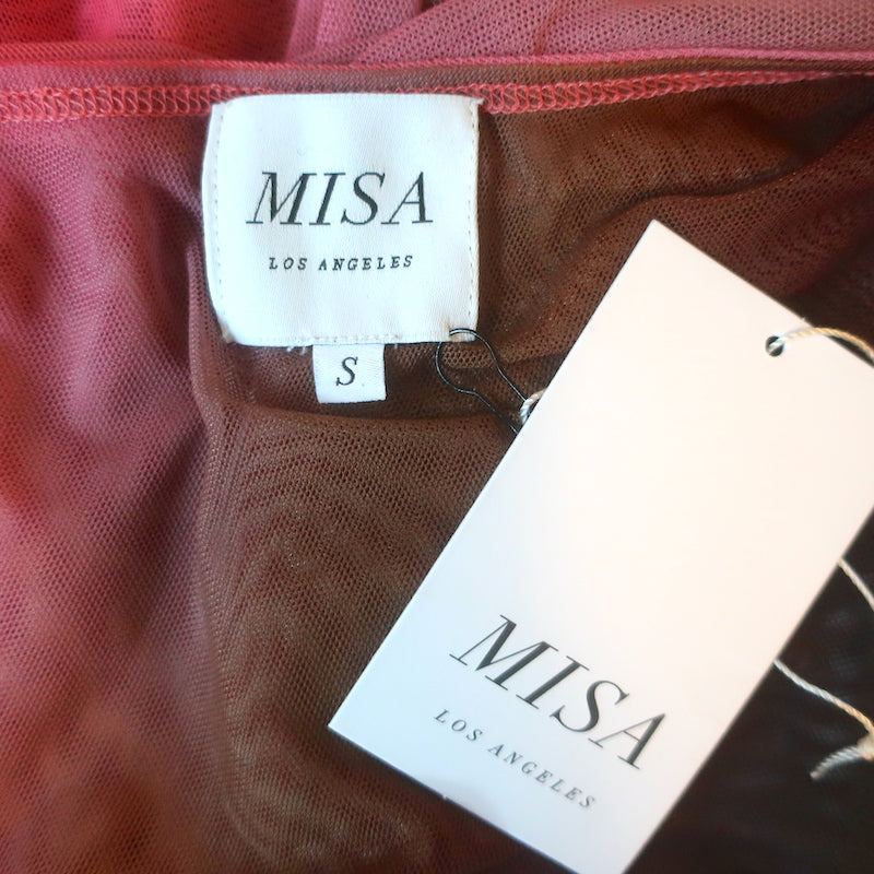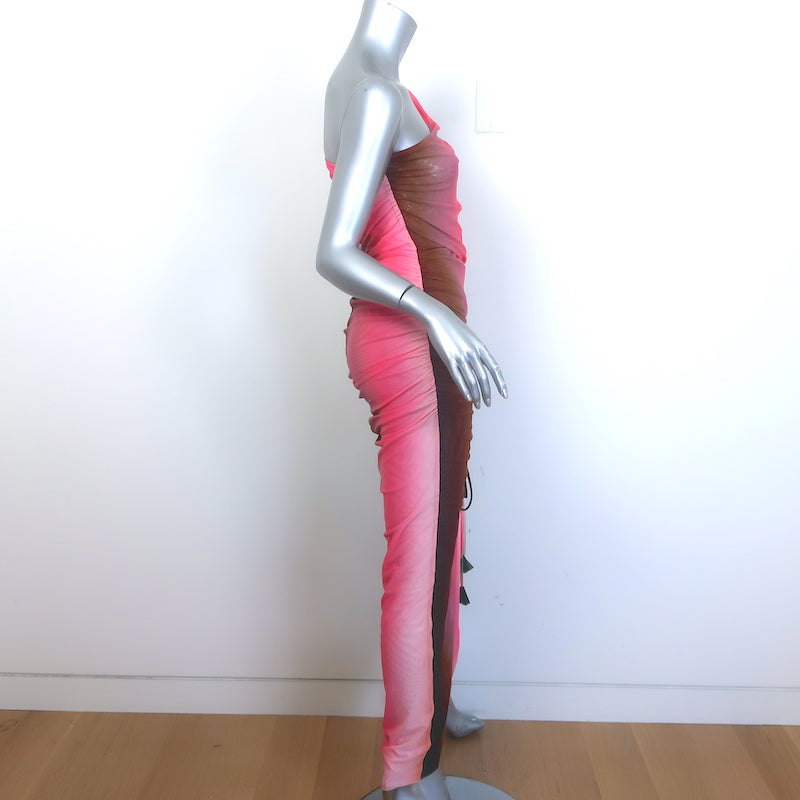 MISA Sirena One-Shoulder Ombre Mesh Midi Dress Pink/Green Size Small NEW