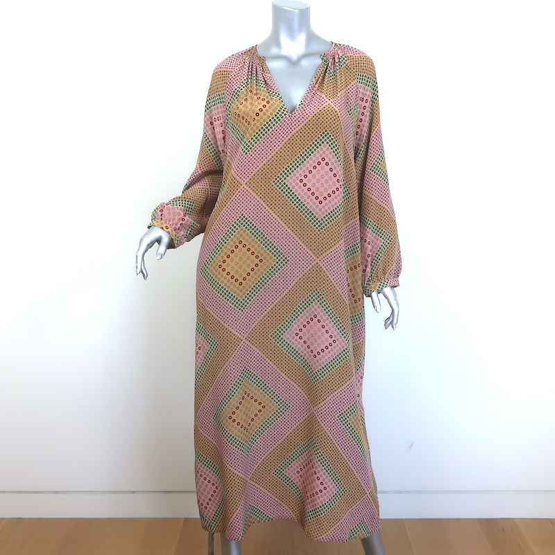 Momoni Lela Long Sleeve Maxi Dress Pink/Beige Printed Silk Size 40