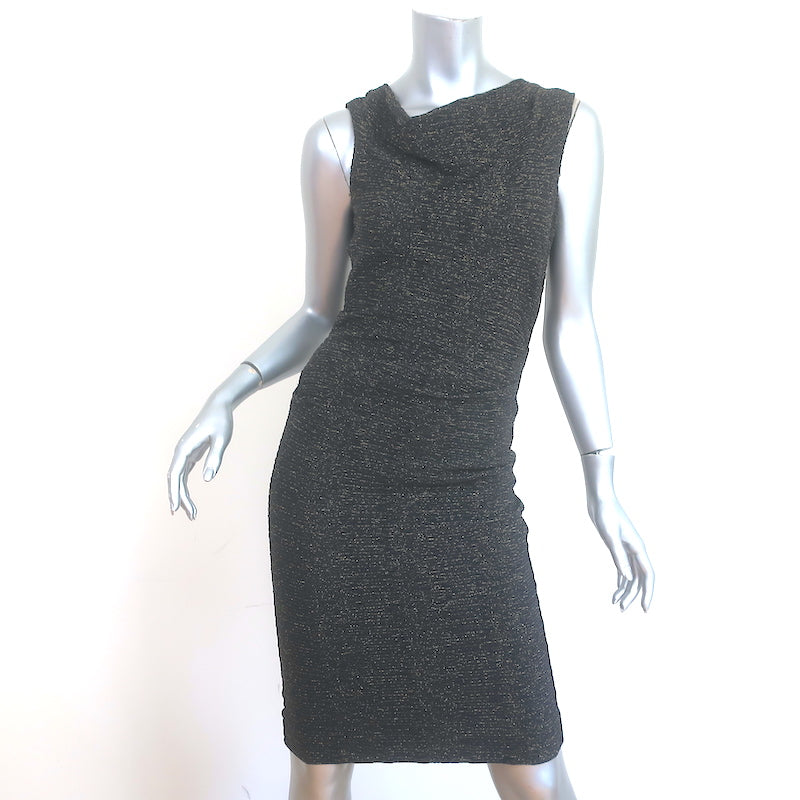 Nicole Miller Artelier Sleeveless Ruched Dress Black & Gold Metallic Size 6