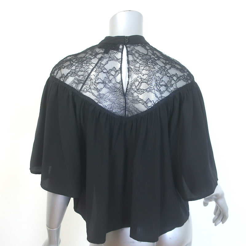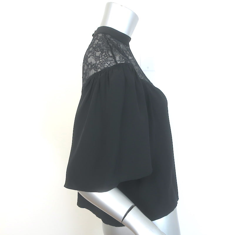 Nili Lotan Lucie Lace-Yoke Blouse Black Silk Size Extra Small NEW