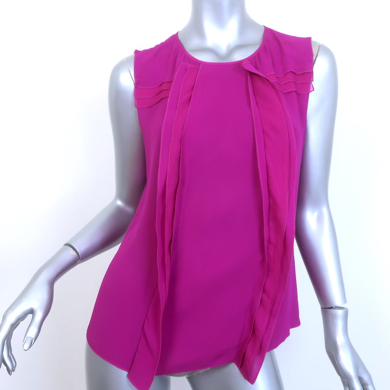 Nina Ricci Ruffle Blouse Magenta Silk Size 38 Sleeveless Top