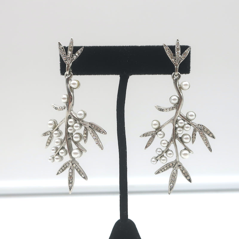 Oscar de la Renta Crystal & Faux Pearl Branch Drop Earrings Silver