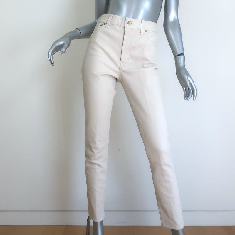 Polo Ralph Lauren Lambskin Leather 5 Pocket Skinny Pants Cream Size 8