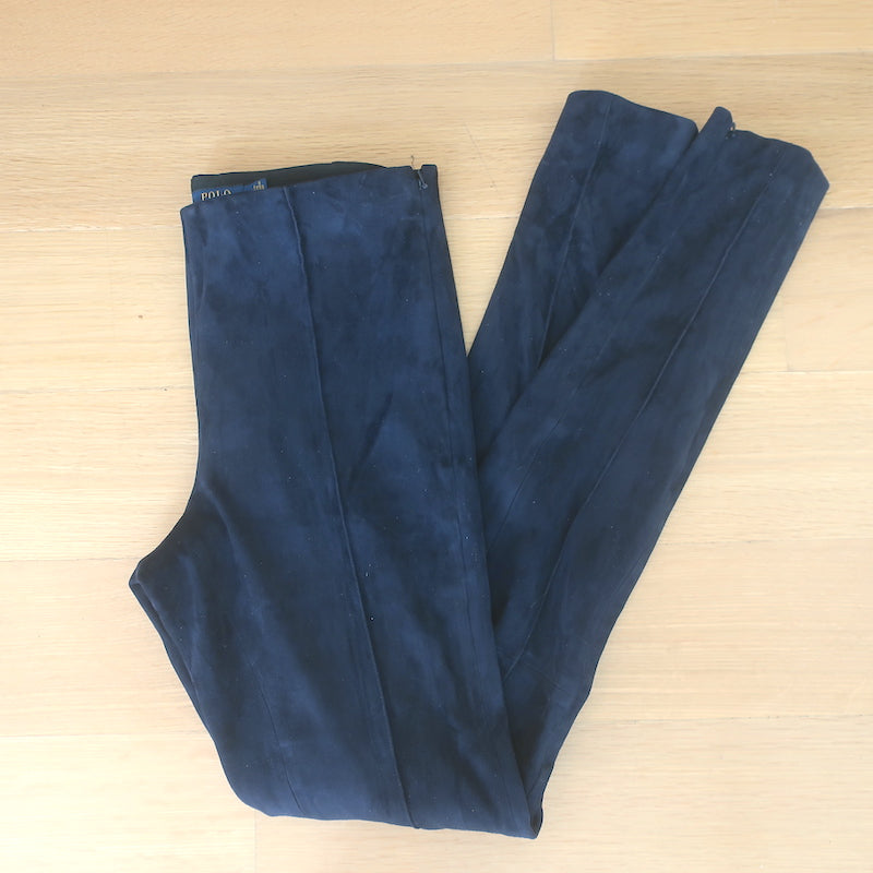 Polo Ralph Lauren Pintucked Suede Leggings Navy Size Medium