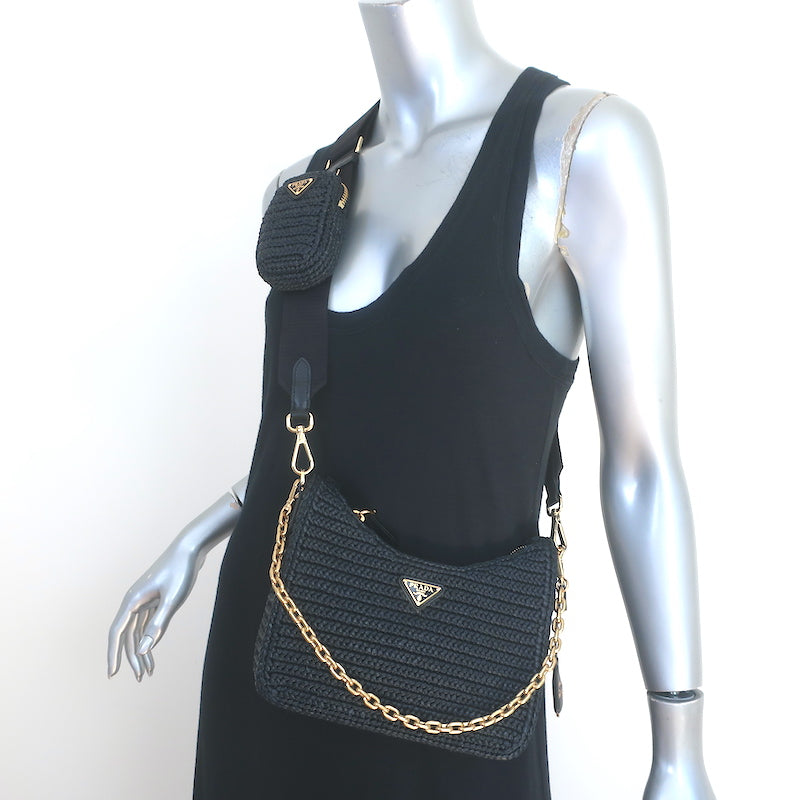 Prada Re-Edition 2005 Crochet Raffia Crossbody Black Small Shoulder Bag NEW