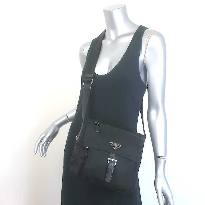 Prada Vela Small Hunting Bag Black Nylon Buckle Flap Crossbody