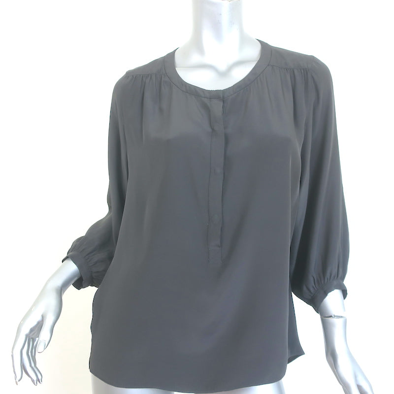 Rag & Bone Popover Blouse Gray Silk Size Small 3/4 Sleeve Top