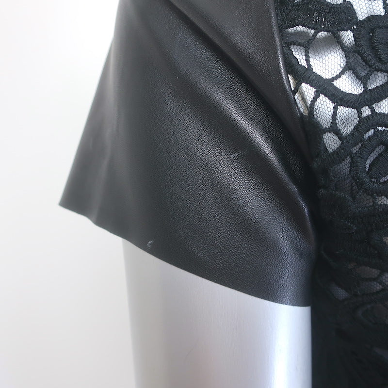 Ralph Lauren Black Label Lana Leather-Sleeve Lace Top Black Size 2