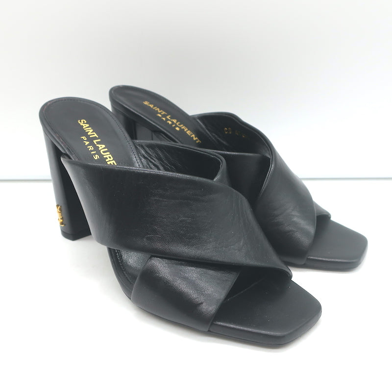 Saint Laurent LouLou Crisscross Sandals Black Leather Size 36 Open Toe Heels