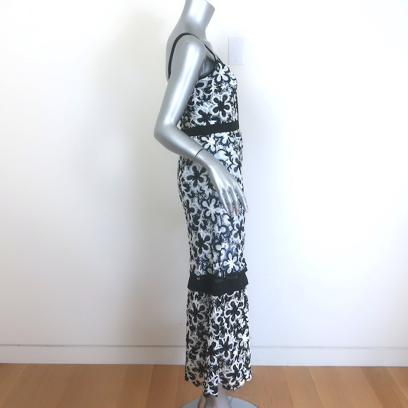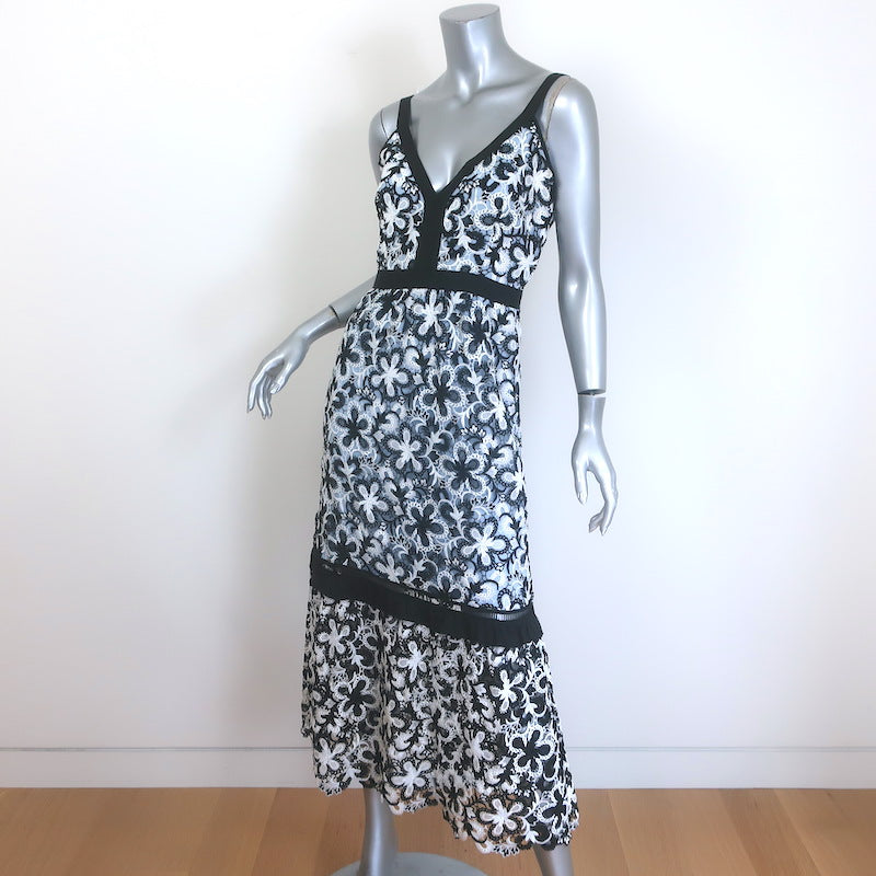 Self-Portrait Floral Guipure Lace Midi Dress Blue/White Size US 6