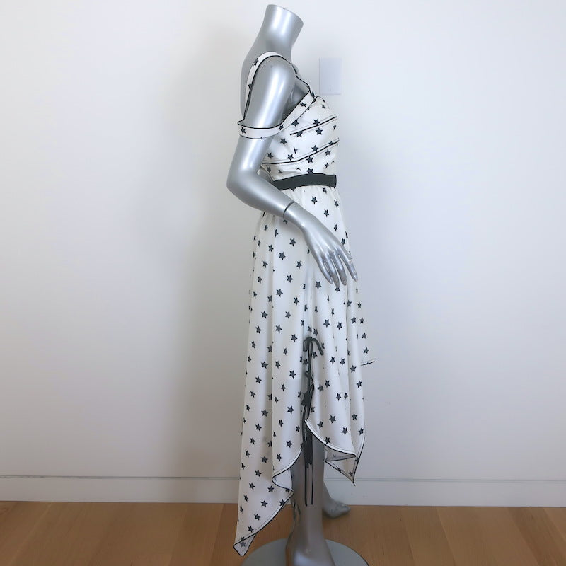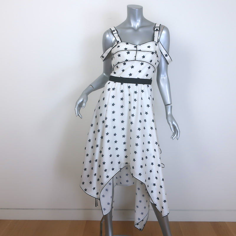Self-Portrait Star Print Handkerchief Hem Midi Dress White Satin Size US 6
