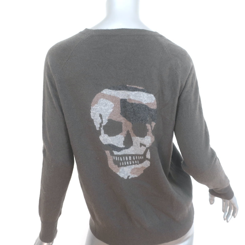 Skull Cashmere Luther Camo Skull Sweater Dark Gray Cashmere Size Extra Small