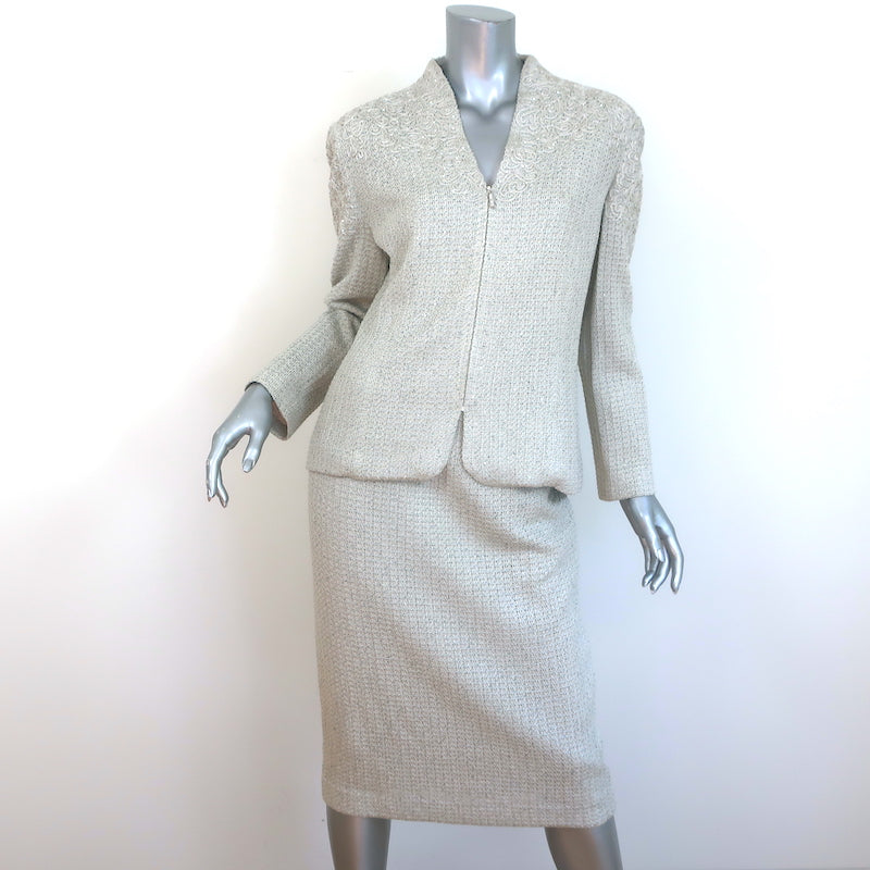 St. John Evening Sequined & Embroidered Knit Skirt Suit Beige Size 8