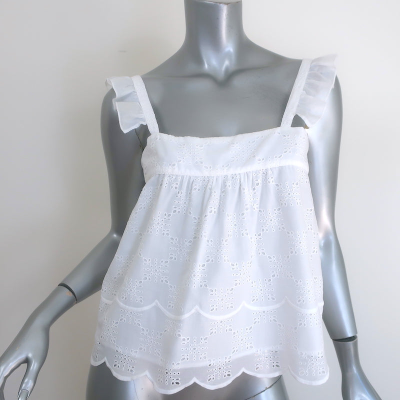 St. Roche Eyelet-Embroidered Ruffle Strap Tank Top White Cotton Size Small