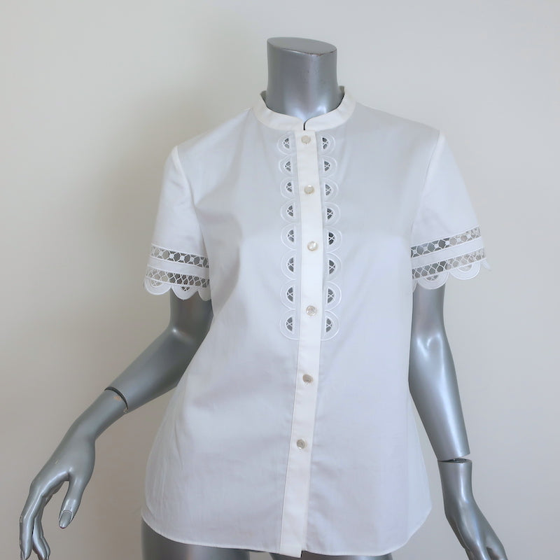 Temperley Lace-Trimmed Button Down Shirt White Cotton Size US 6 Short Sleeve Top
