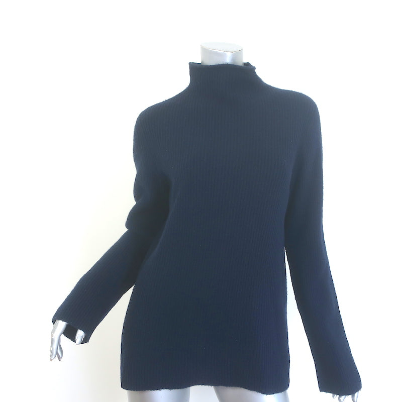 The Row Ribbed Knit Turtleneck Sweater Navy Wool-Cashmere Size Large