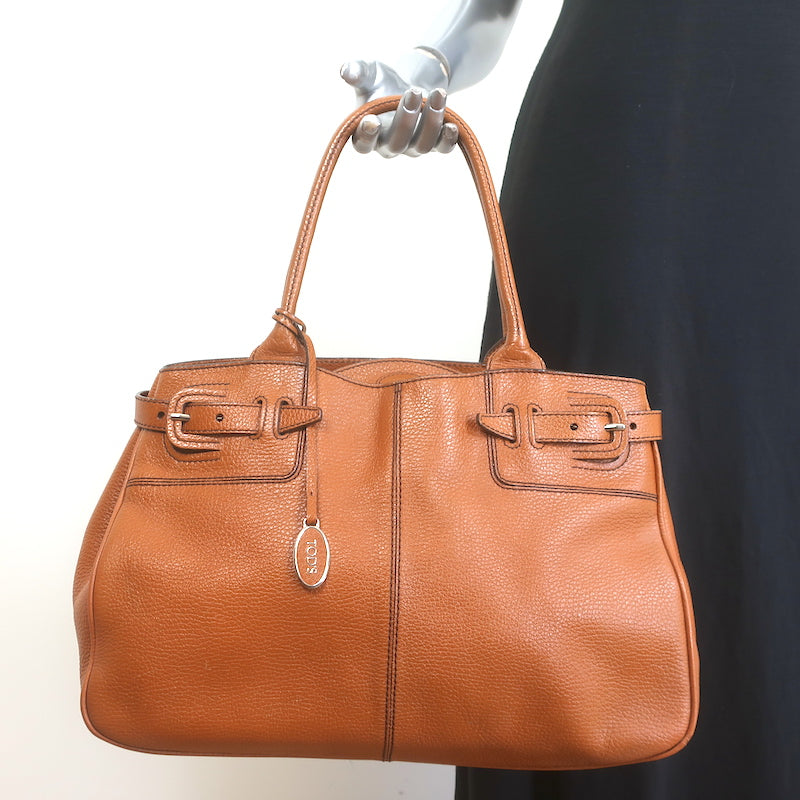 Tod's Buckled Tote Camel Grained Leather Medium Shoulder Bag