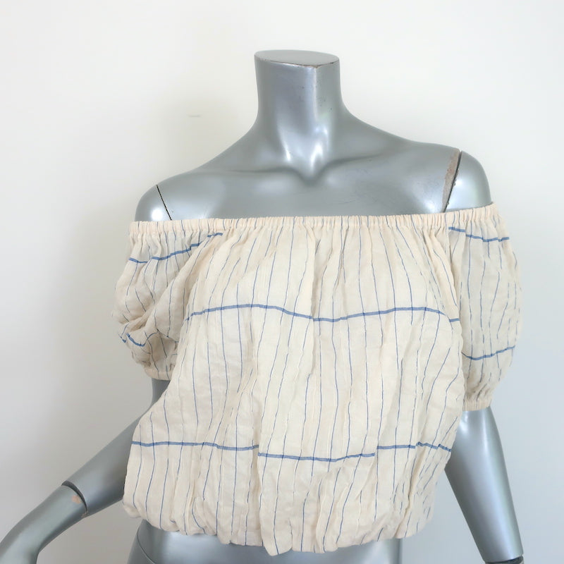 Tory Burch Off the Shoulder Cropped Top Ivory/Blue Striped Cotton Size Medium