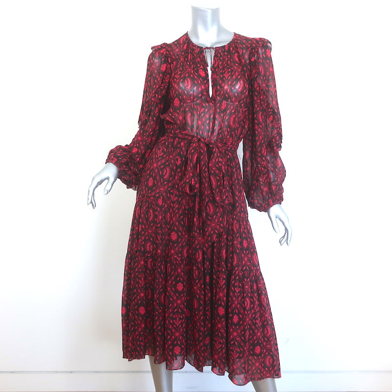 Ulla Johnson Aliya Belted Midi Dress Red Printed Silk Chiffon Size 6