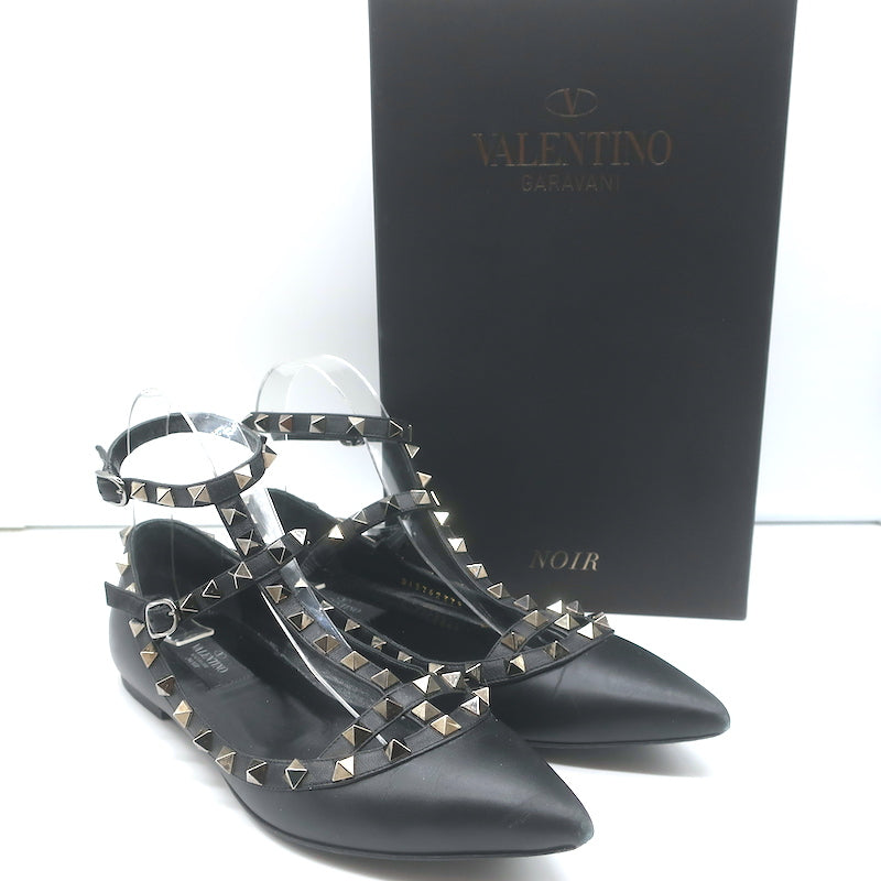 Valentino Noir Rockstud Pointed Toe Ballet Flats Black Leather Size 35.5