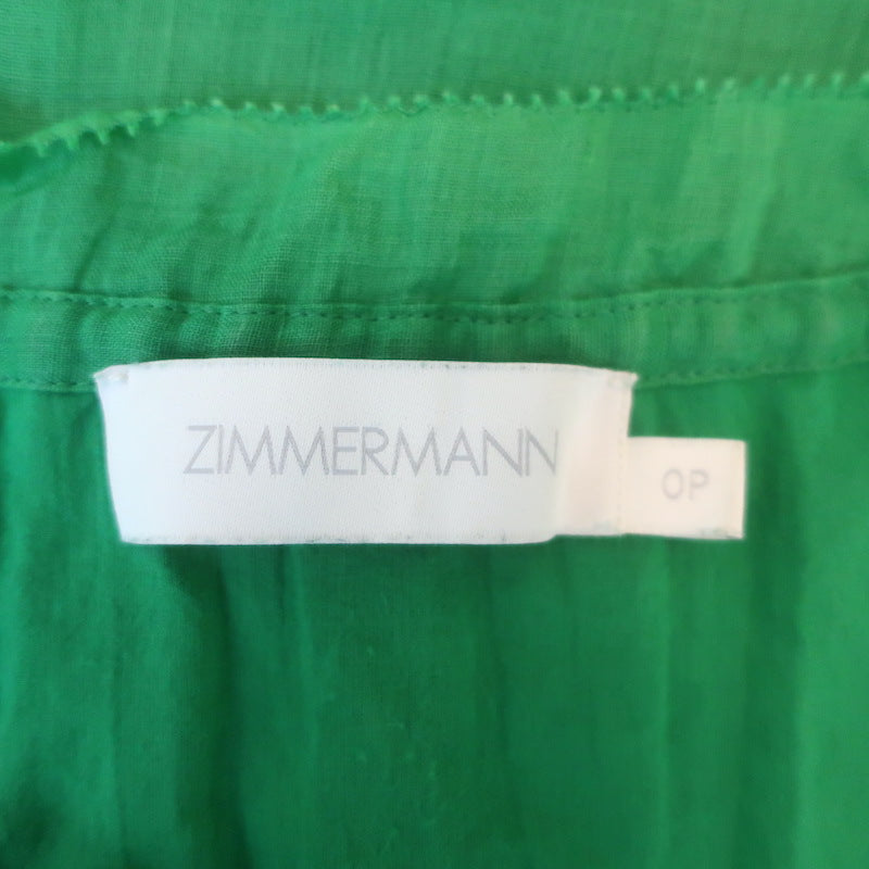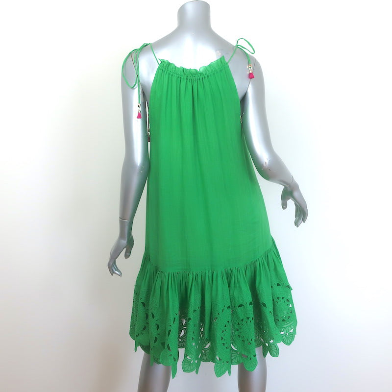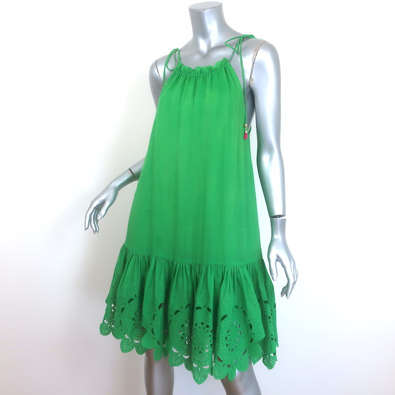 Zimmermann Teddy Broderie Anglaise Mini Dress Green Ramie Size 0P