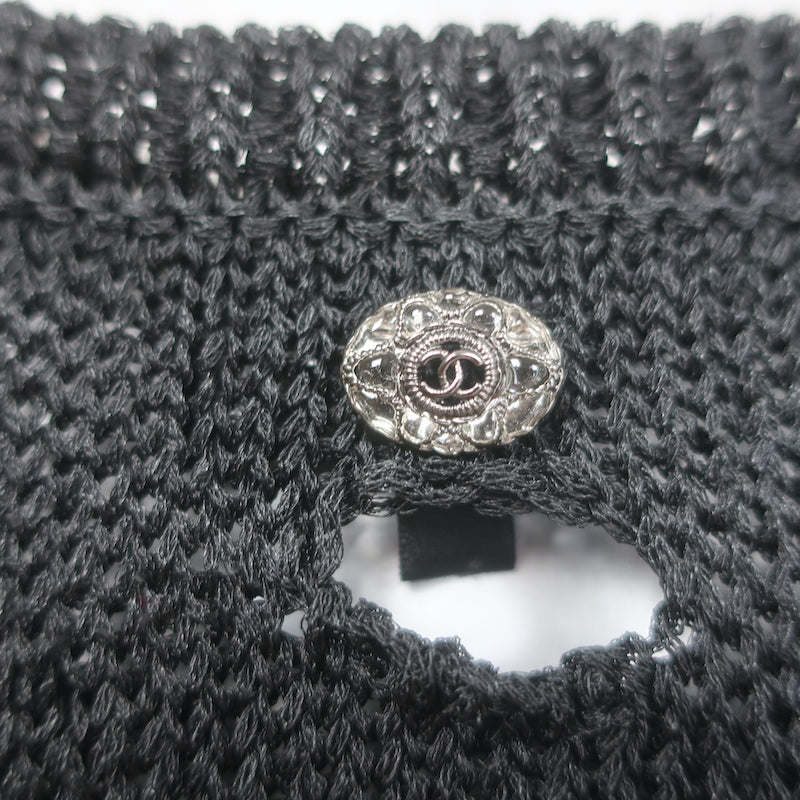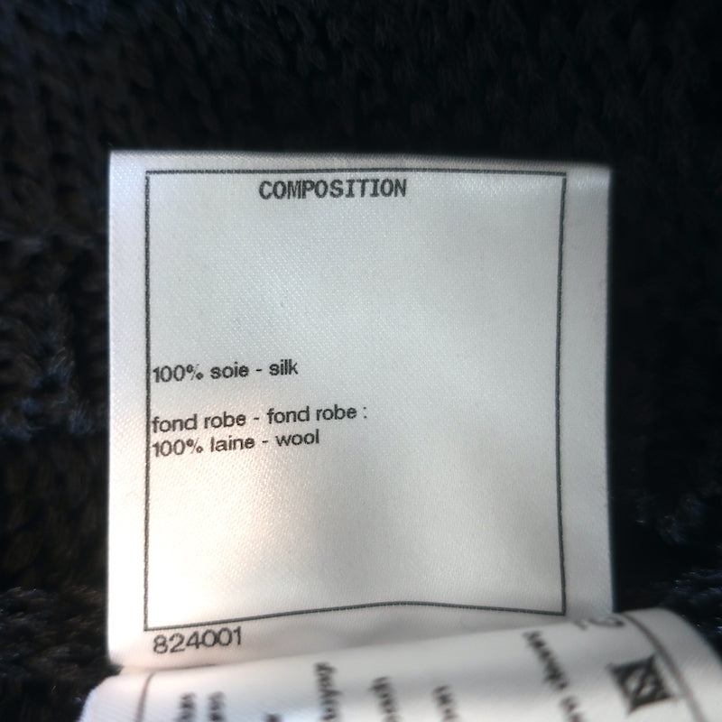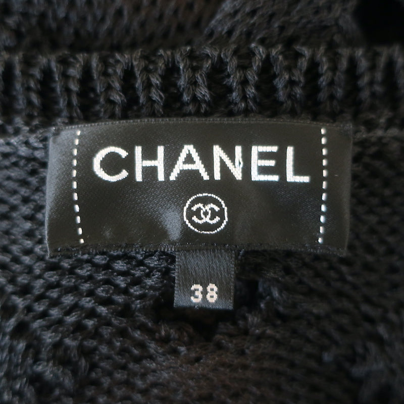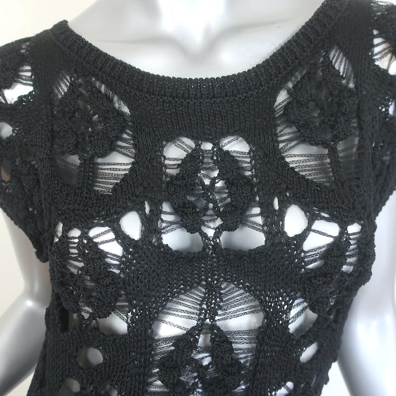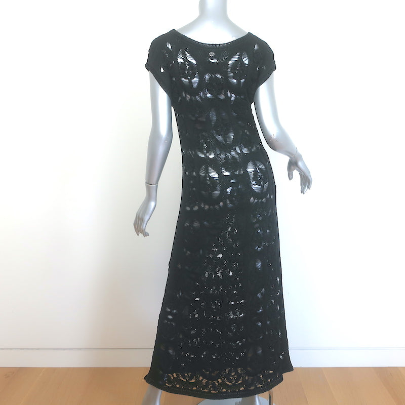 Chanel 17C Crochet Knit Cap Sleeve Maxi Dress Black Silk Size 38