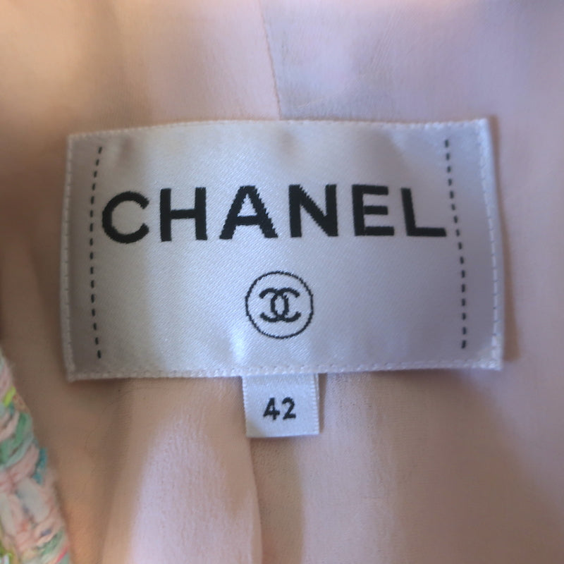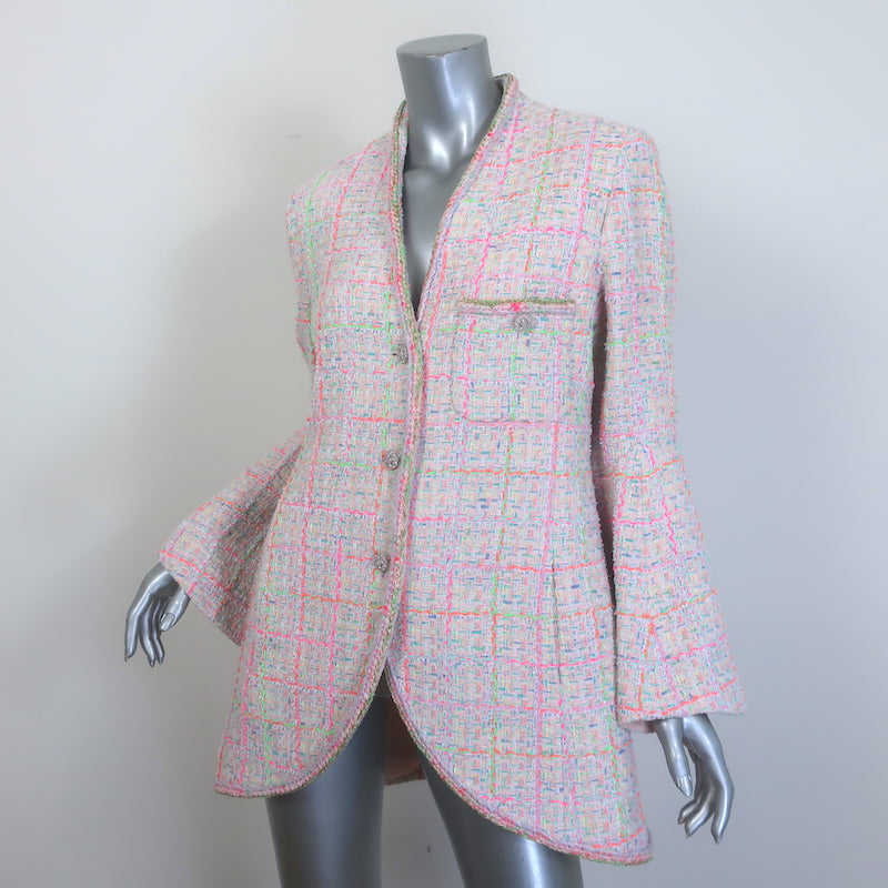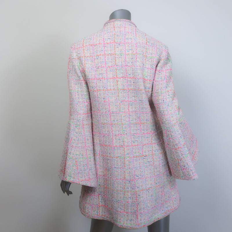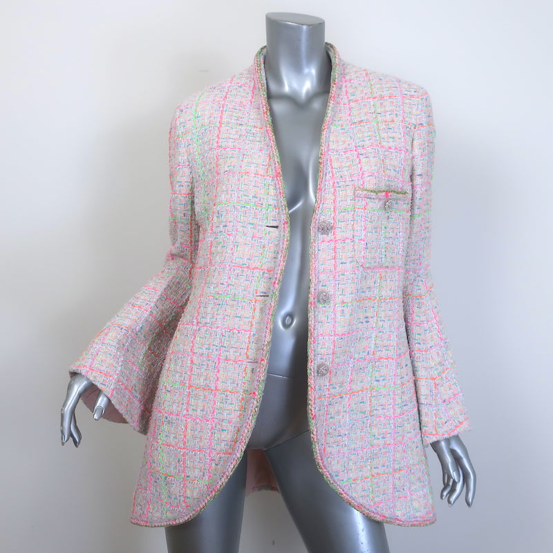 Chanel 24C Flared-Sleeve Neon Tweed Jacket Light Pink Cotton-Blend Size 42