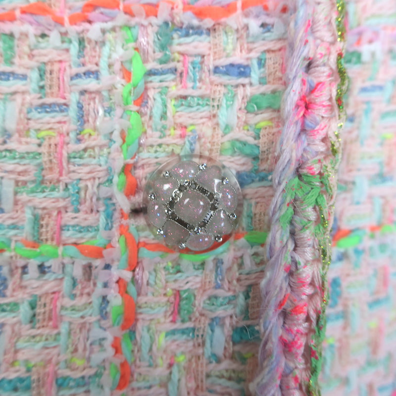 Chanel 24C Tweed Jewel-Button Vest Light Pink/Neon Cotton-Blend Size 38